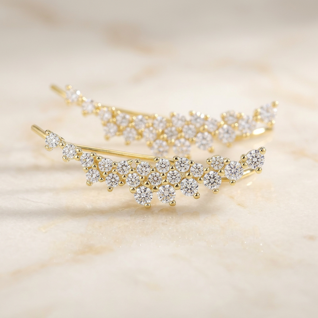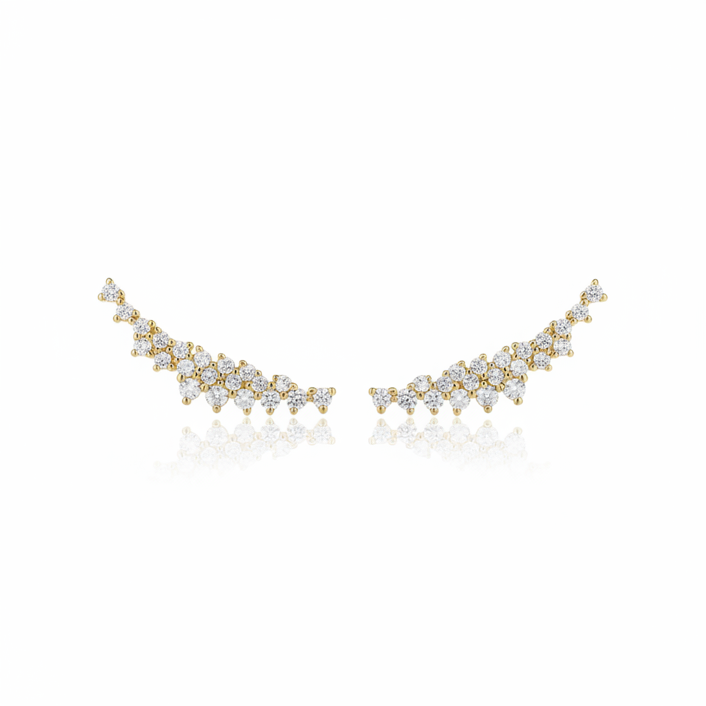 עגיל מטפס עשוי פליז בציפוי זהב 14K 2 מיקרון משובץ באבני זרקון העגילים מגיעים כזוג.