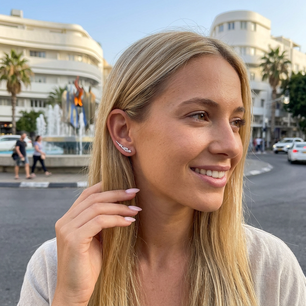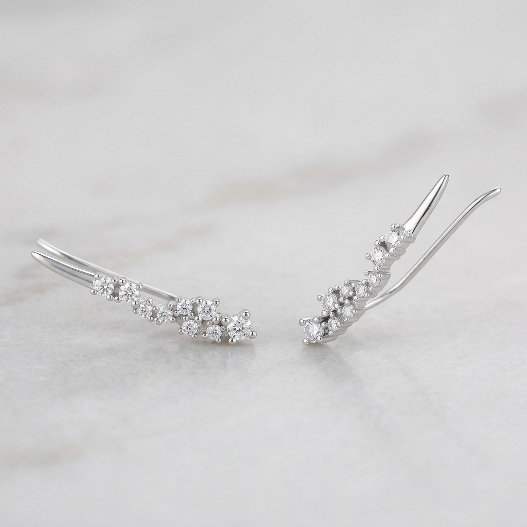 עגיל מטפס עשויים כסף אמיתי 925 משובצים אבני זרקון. העגילים מגיעים כזוג